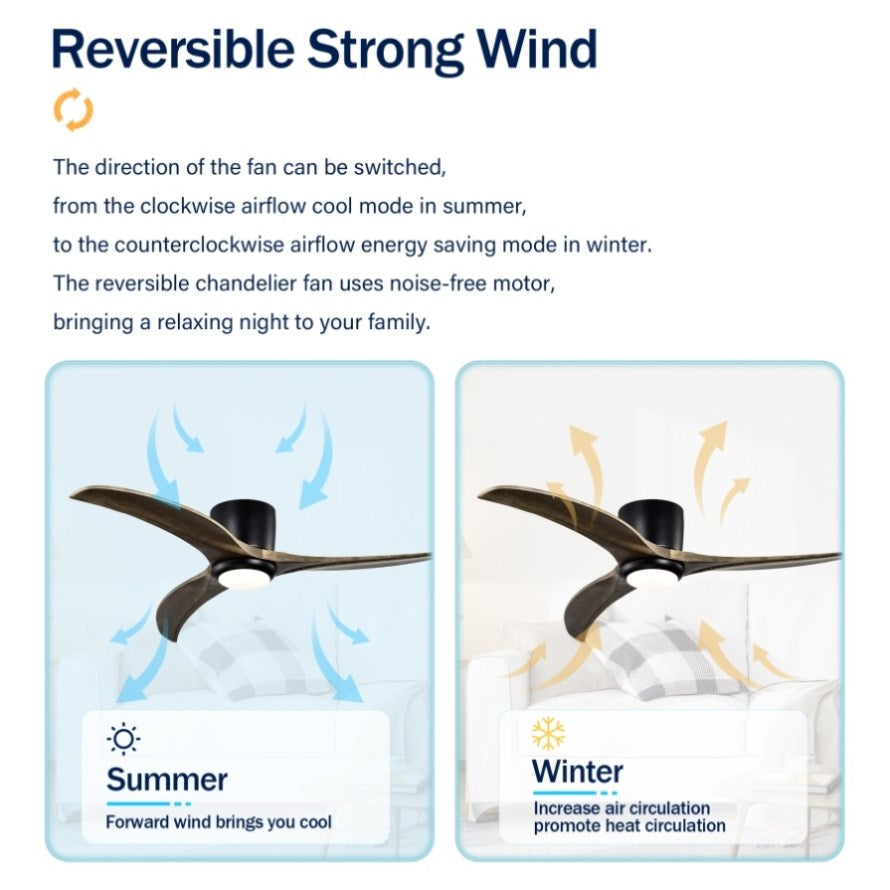 The ceiling fan is equipped with a remote control for your convenience. There are 6 speeds that can be adjusted to meet your different needs and maintain the ideal comfort level. And it has timing function, so you can set 2 different times (1 hours / 4 hours) as needed.