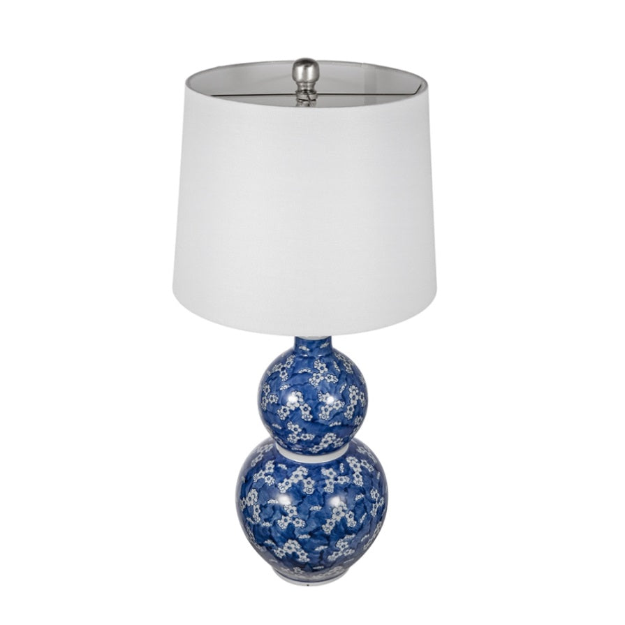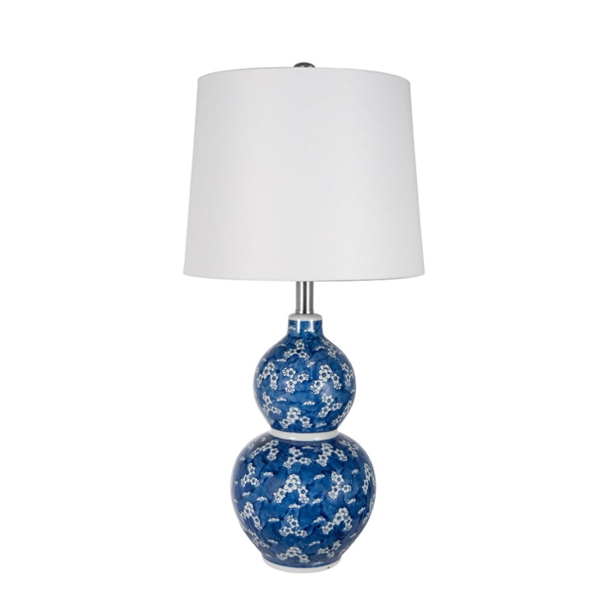 With its unique two-tiered round shape, bold blue hue, and intricate white patterns, this piece offers the playful visuals of an accent vase and the soothing ambiance of a table lamp. Measuring 25.7H x 13D, it will slot perfectly onto a large tabletop, countertop, desk, sideboard, or anywhere else throughout your home and office, creating a solid focal point no matter the location.