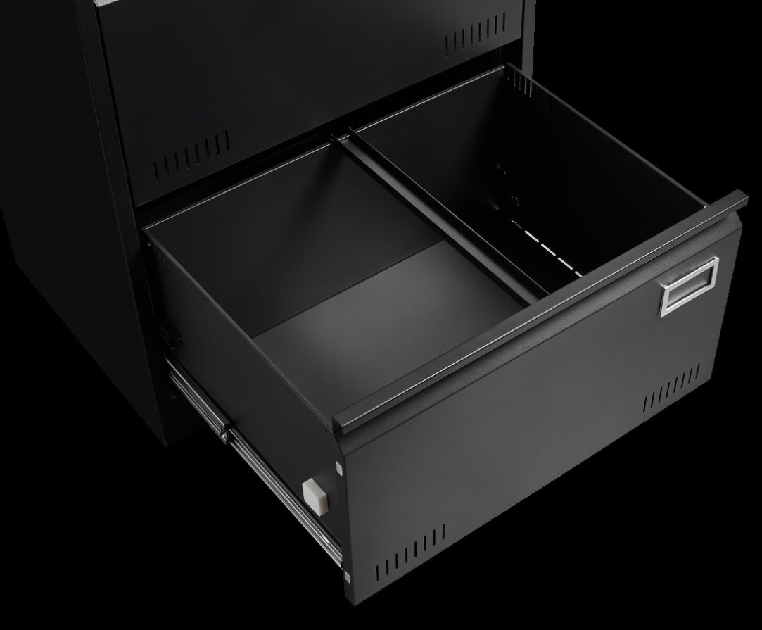 Widened drawers The drawers of a file cabinet are usually larger than standard sized drawers, so they can accommodate more documents and information.Different types of documents and materials can be placed in different drawers to maintain a clean and orderly office environment.