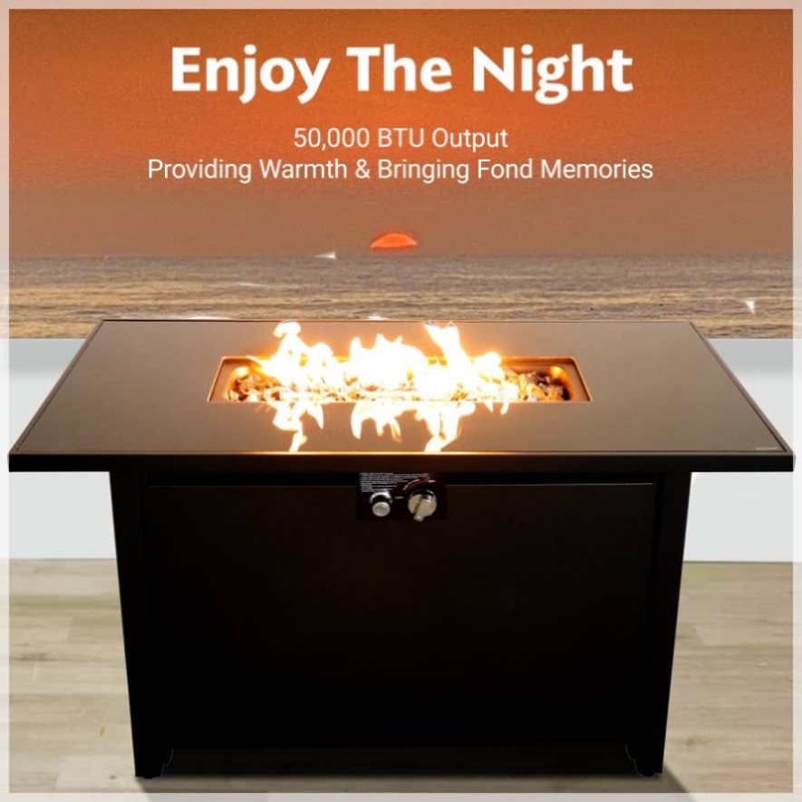 Create cozy memories and enjoy warm evenings outdoors with this stylish fire pit table.