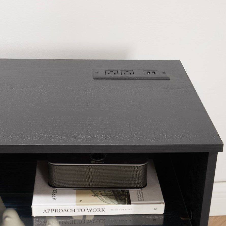 - TV Console with Power Outlets๏ผThe top of the TV cabinet provides additional sockets. 2 sockets, and 2 USB ports. The top of the entertainment center is designed with cable holes for storing additional cables. lt can maintain the overall appearance and clean liness of the environment.