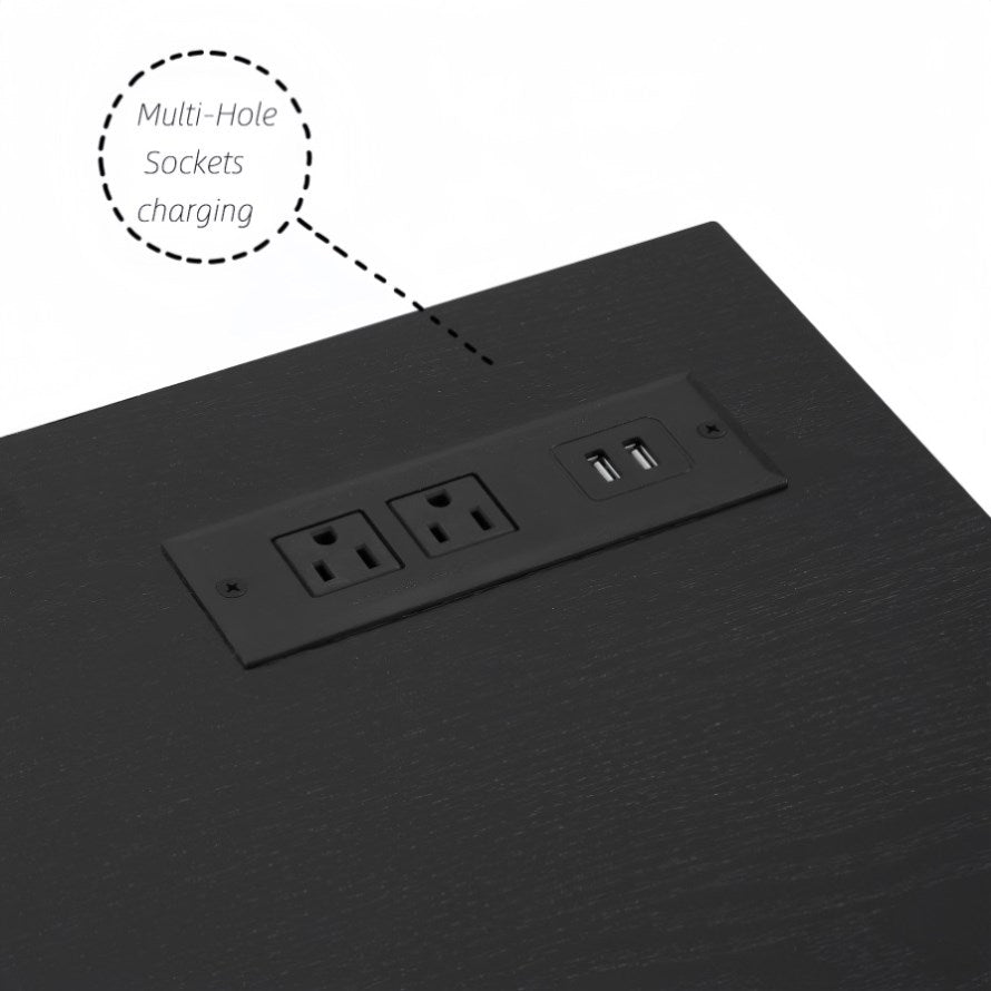 TV Console with Power OutletsThe top of the TV cabinet provides additional sockets. 2 sockets, and 2 USB ports. The top of the entertainment center is designed with cable holes for storing additional cables. lt can maintain the overall appearance and clean liness of the environment.