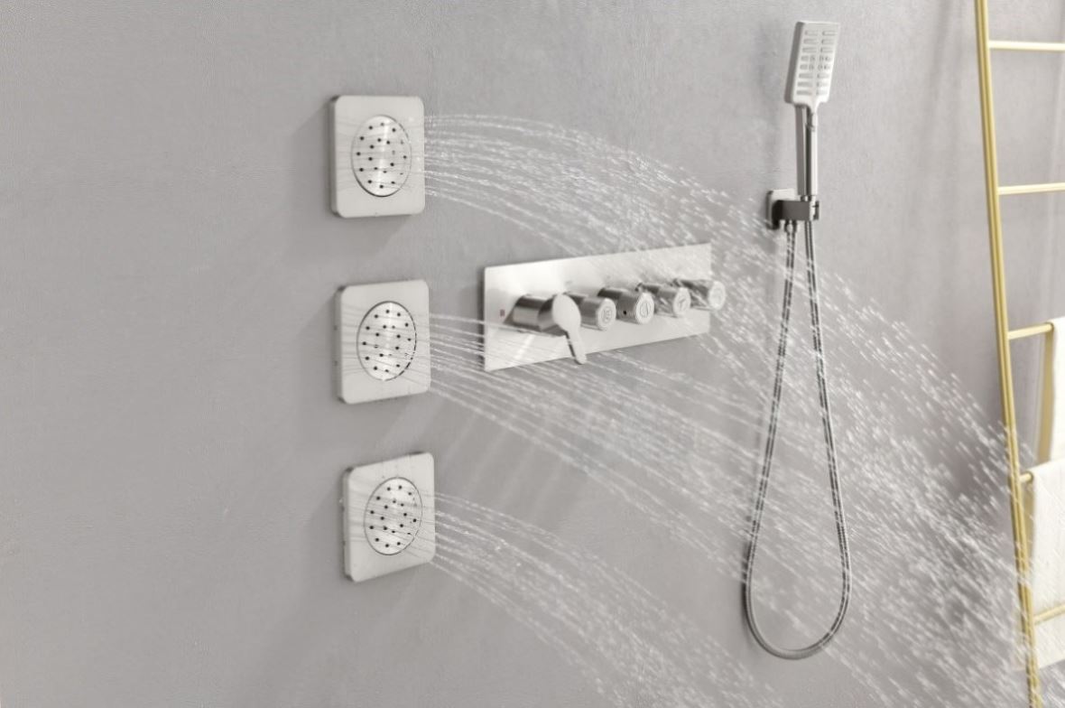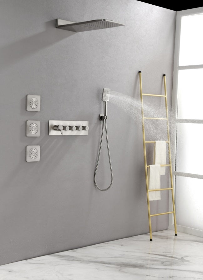 Wall Mounted Waterfall Rain Shower System With 3 Body Sprays & Handheld Shower TH-78109-NS