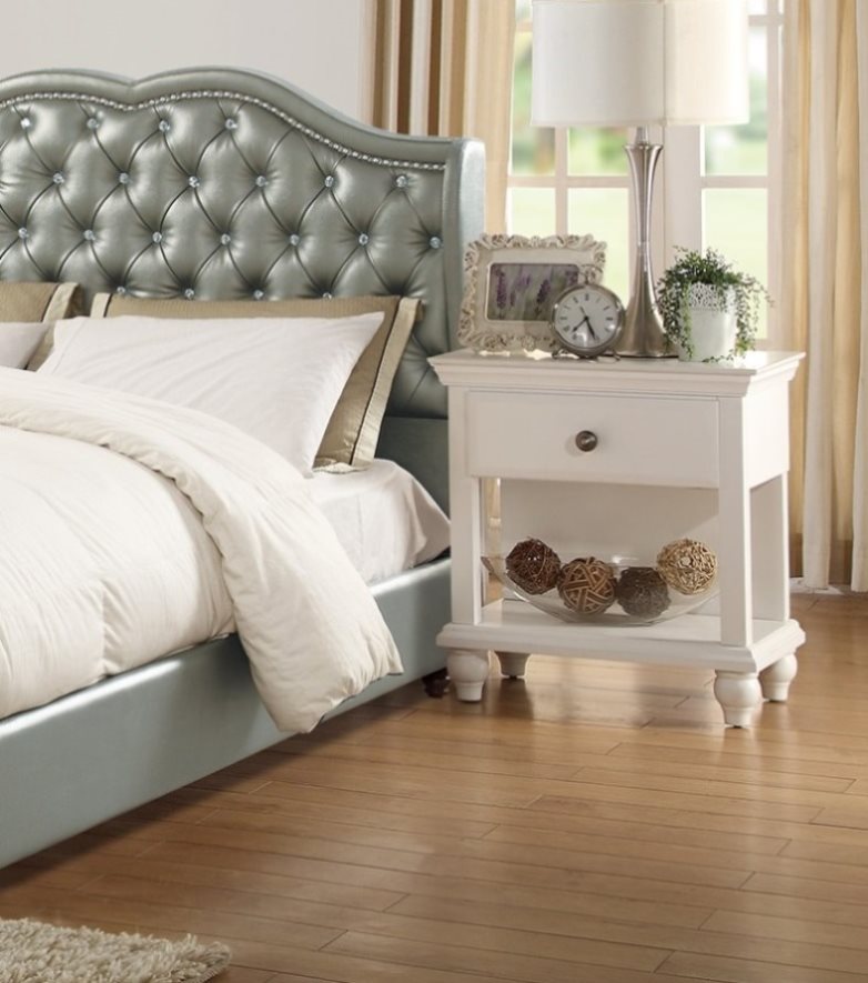 Contemporary StyleWhite Finish1-Drawers NightstandPoplar wood Particle board MDFOpen Shelve StoragePlywood, Unique LegsRound Knob HandleListing Includes:- 1x Nightstand only. Product Description Description:- Premium general nightstand, with traditional craftsman button tuft finish. Bringing decadence and luxurious aesthetic into your intimate living space. Dimensions :- Nightstand - 24" x 16" x 26"H Listing...
