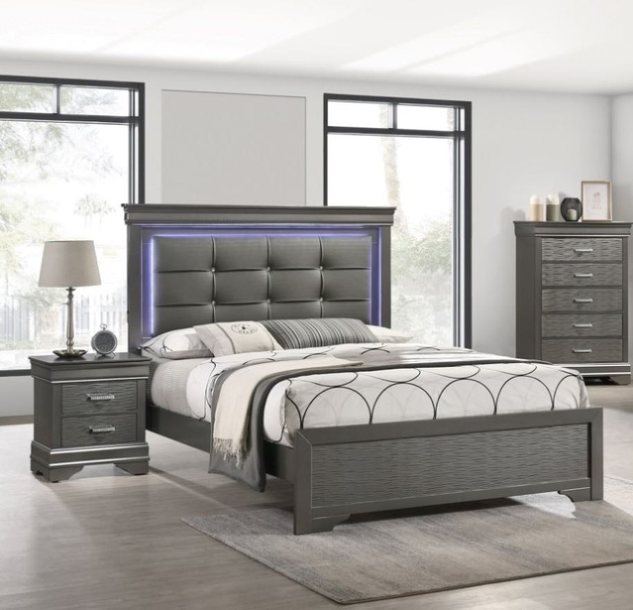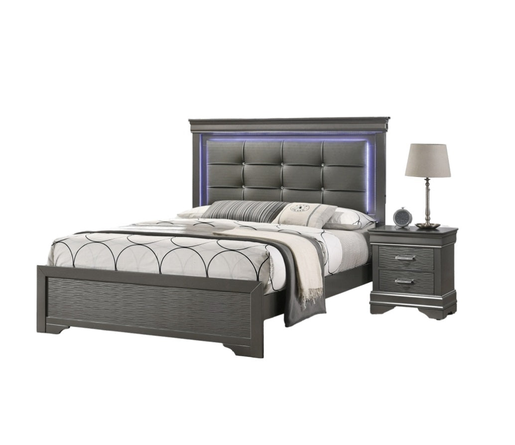 Description :- Organize your essentials effortlessly with the two spacious drawers, offering a convenient storage solution while maintaining a sleek and streamlined look. The drawer handles showcase a sophisticated design, adding a touch of luxury to your space. The thoughtful curves on the top and bottom of the frame provide a unique and charming aesthetic, making this nightstand a standout piece in any bedroom. Whether you're looking to upgrade your bedroom decor or enhance the functionality of your space, this Nightstand is the perfect choice. Pair it with the matching Chest, Dresser, Mirror, and Bed.