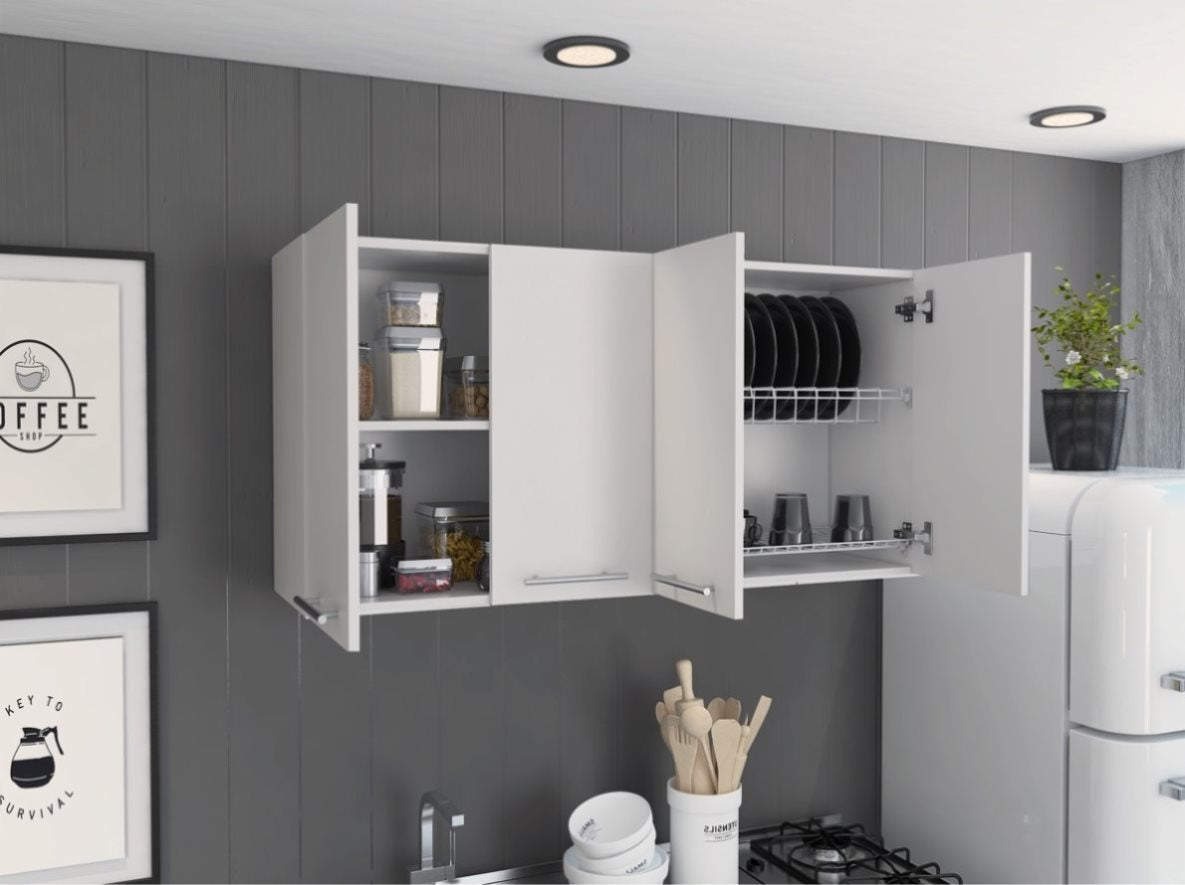 Wall mountedFour-door wall mounted cabinetWhite finish enhances the sense of spaceRectangular shape offers a classic, versatile look Romance Copy This cabinet features four swing doors for easy access to its interior compartments and is designed to be wall-mounted, saving floor space while providing a modern, streamlined appearance. The white finish...