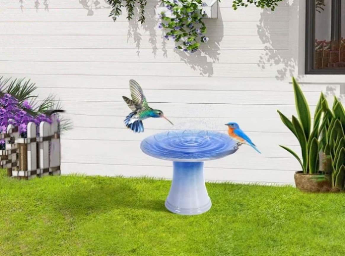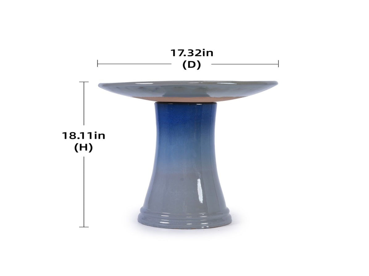 Bring elegance and tranquility to your garden with this beautifully crafted ceramic birdbath. Featuring a stunning blue-to-ivory ombre glaze, it serves as both a serene resting place for birds and a stylish focal point for your outdoor space. The smooth, glossy finish highlights the gentle color transition, adding a touch of modern artistry to any patio, lawn, or courtyard.