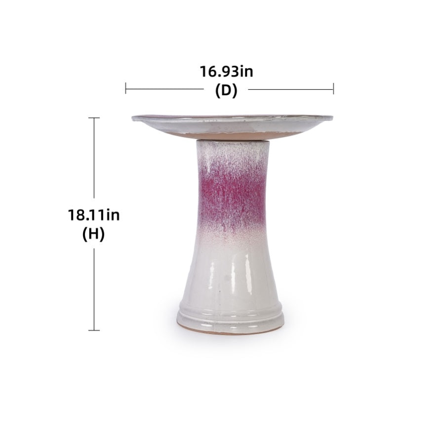Bring elegance and tranquility to your garden with this beautifully crafted ceramic birdbath. Featuring a stunning rose-to-ivory ombre glaze, it serves as both a serene resting place for birds and a stylish focal point for your outdoor space. The smooth, glossy finish highlights the gentle color transition, adding a touch of modern artistry to any patio, lawn, or courtyard.
