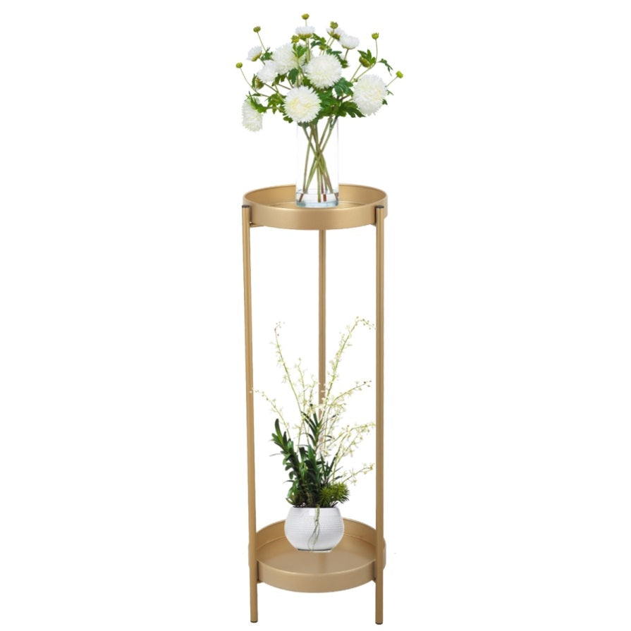: Adopted luxurious golden finish and streamlined frame, this 2-tier plant stand adds elegance to your living room, bedroom, sunroom, patio or other outdoors.