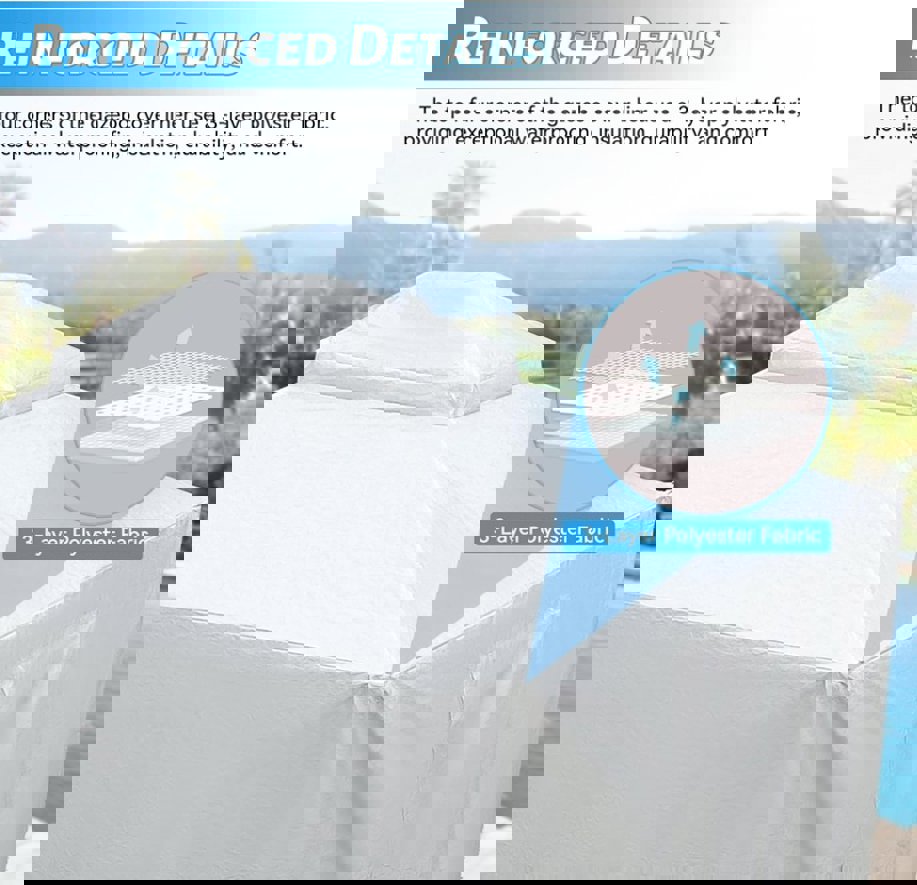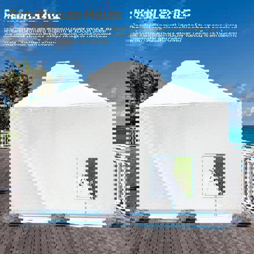 Enhanced Windproof Design: With an extended 8.7-inch length on all sides and pre-drilled holes, this cover can be securely anchored to withstand even the strongest winter winds. These features ensure that your gazebo remains stable and protected, no matter the weather.