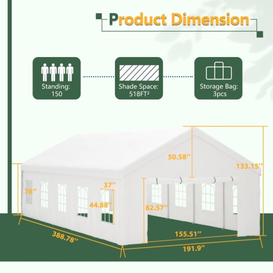 16x32 FT Party Tent with 3 Storage Bags & Removable Sidewalls, Outdoor Canopy Gazebo for Carport 28883627