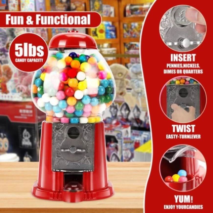 GUM BALL MACHINE - The bright red color and real glass globe on this bubble gum machine give a vintage 1920s-style look that serves as an attractive decoration while dispensing gumballs, candy, and other treats with a diameter of up to 0.7-inches.ADJUSTABLE DISPENSING - Equipped with an innovative dispensing mechanism...