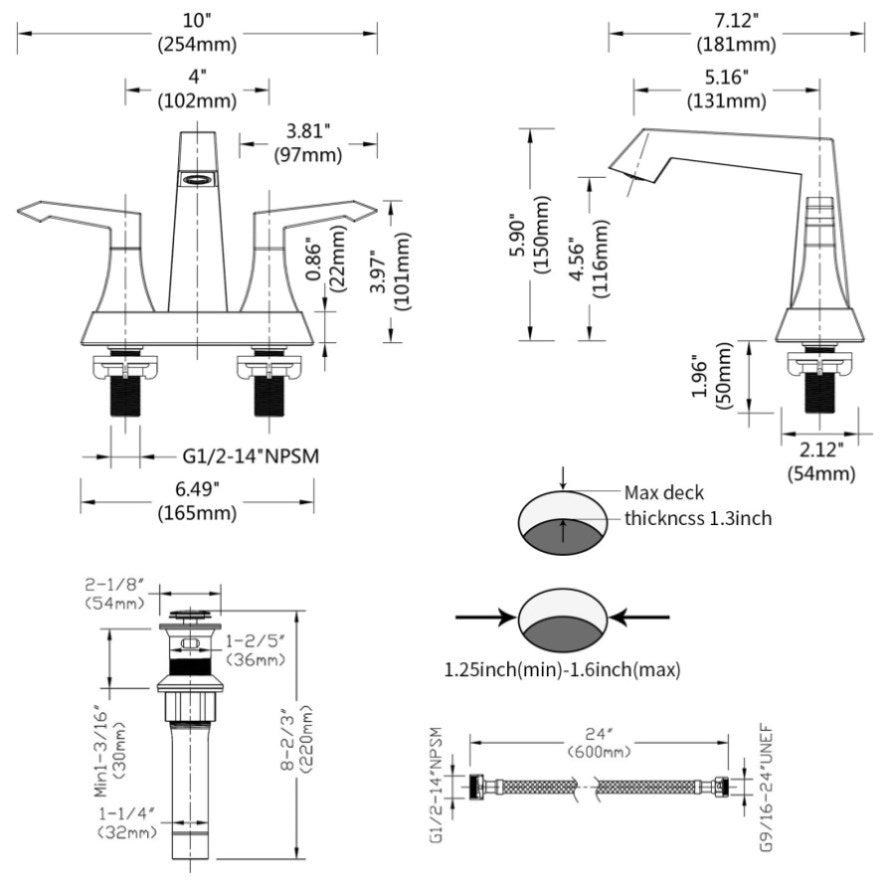 Two-handle design --- Two handle metal lever design for precise control in both volume and water temperature. Minimalist modern design makes your bathroom more elegant. GELE is dedicated to designing and delivering good products that last a lifetime.