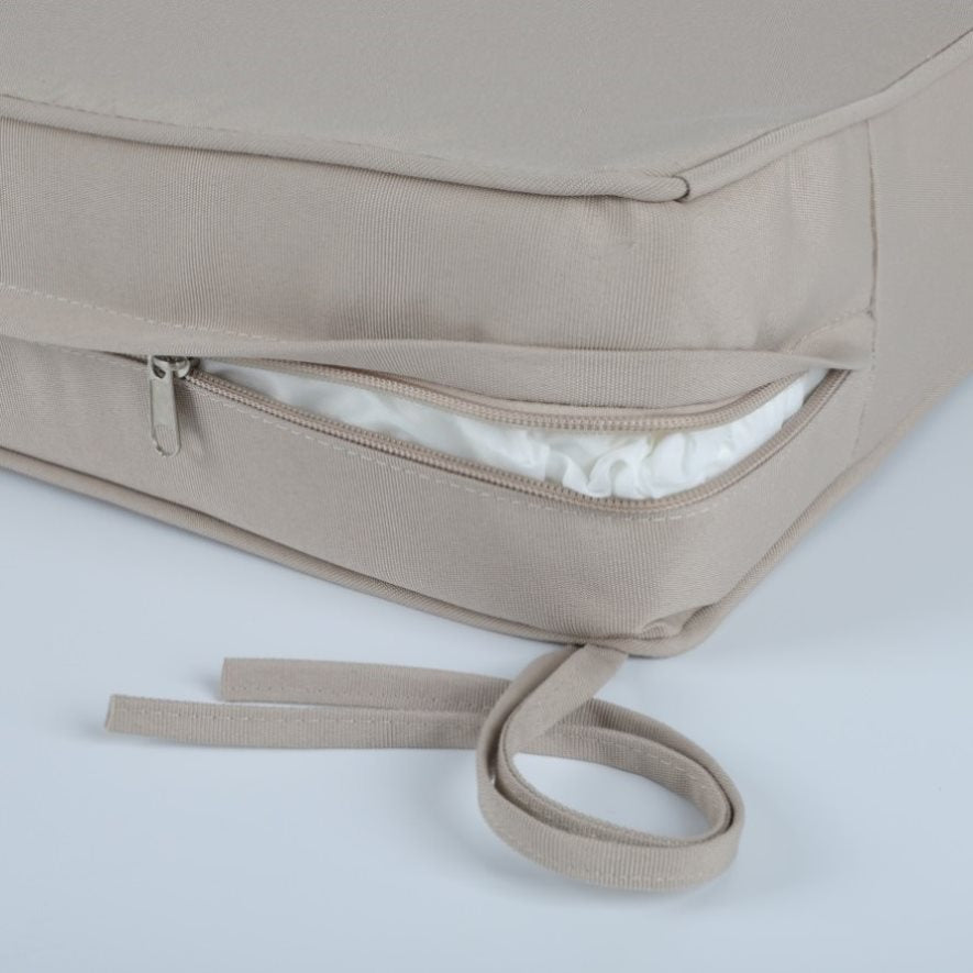 Metal Zip● The hidden zipper could prevent water from seeping through the seams. The the piped edges and interior double bound seams make the cushion good looking and sturdy. The portable handle make it easily to take on and off even with just one hand.
