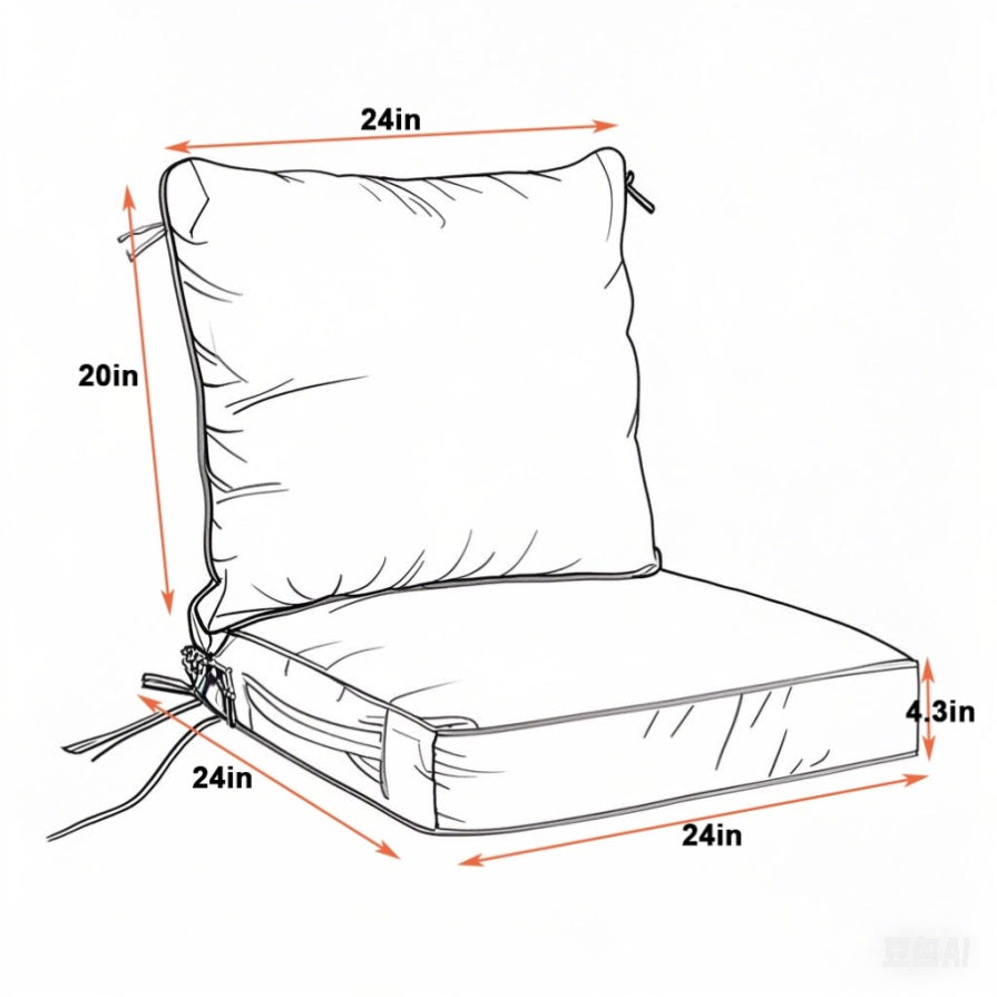 Deep Seat Comfort Upgrade● 24x24 inch oversized design with 4.3-inch thick cushions provides ergonomic support for patio chairs, sofas, or porch swings. Say goodbye to sagging seats! o sagging seats! Both the seat cushion and backrest cushion feature two reinforced straps to ensure a secure and stable fit on chairs, preventing slipping or shifting during use.