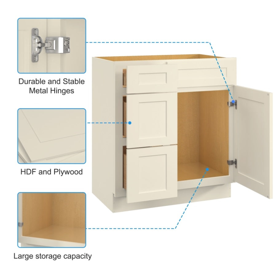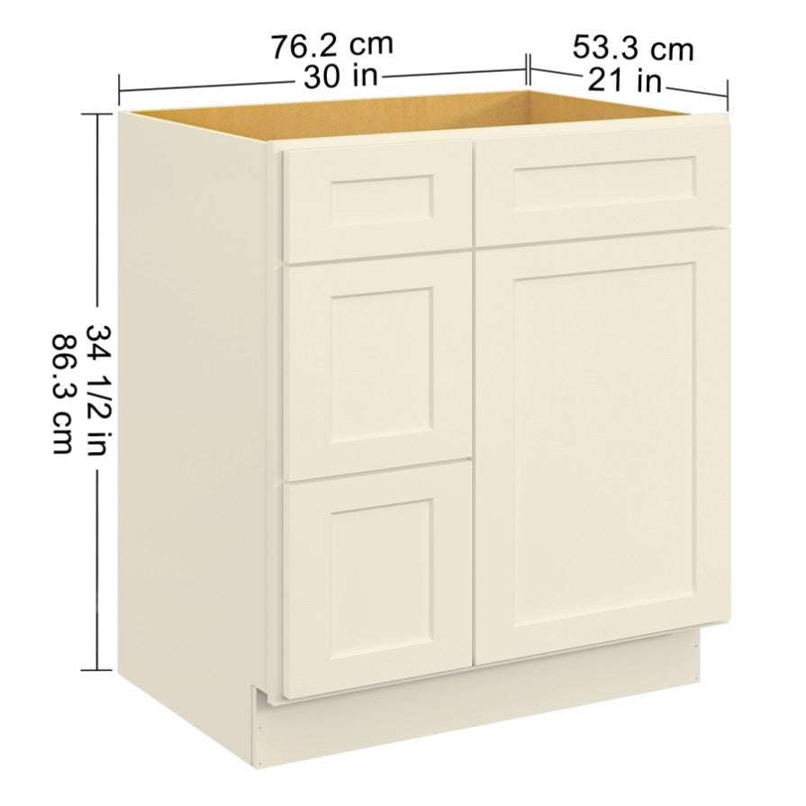 30 in. W x 21 in. D x 34.5 in. H in Antique White Plywood Ready to Assemble Floor Vanity Sink Base T3210P282883