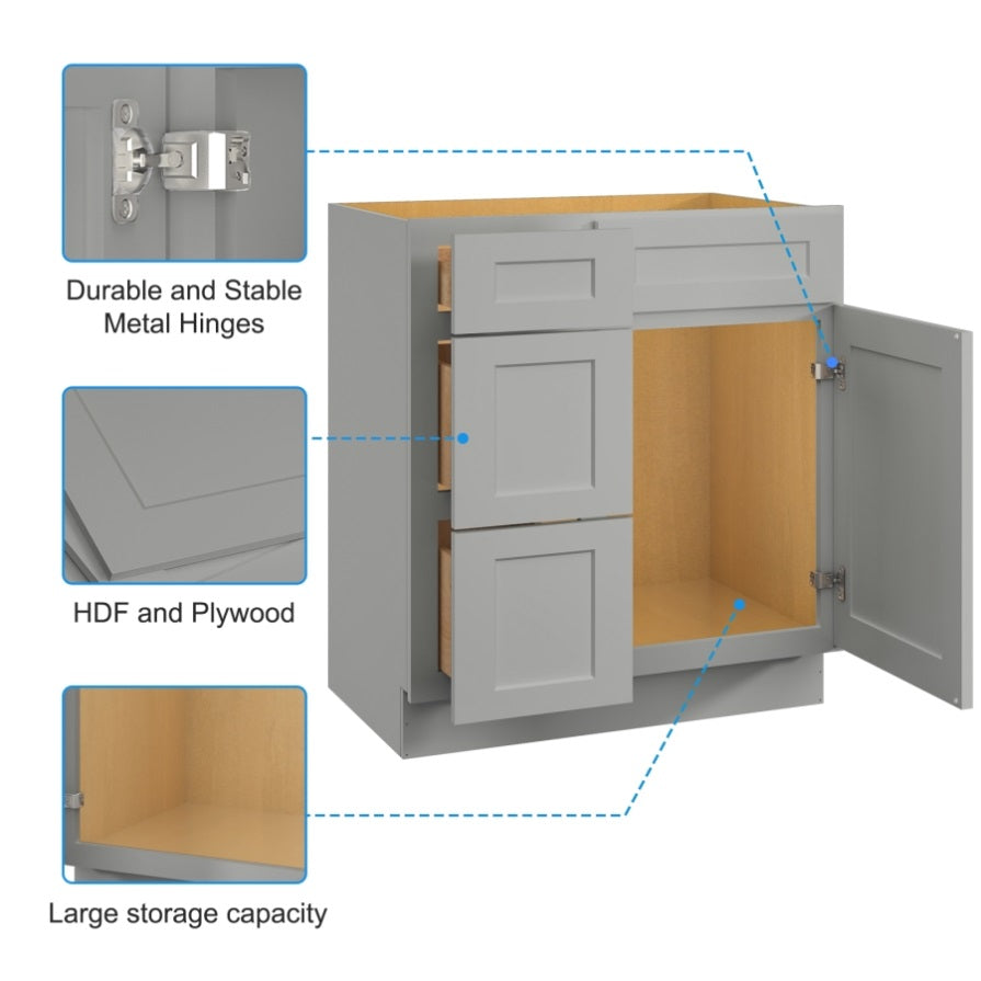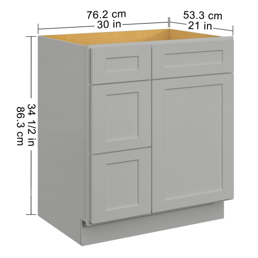30 in. W x 21 in. D x 34.5 in. H in Shaker Grey Plywood Ready to Assemble Floor Vanity Sink Base T3210P282881