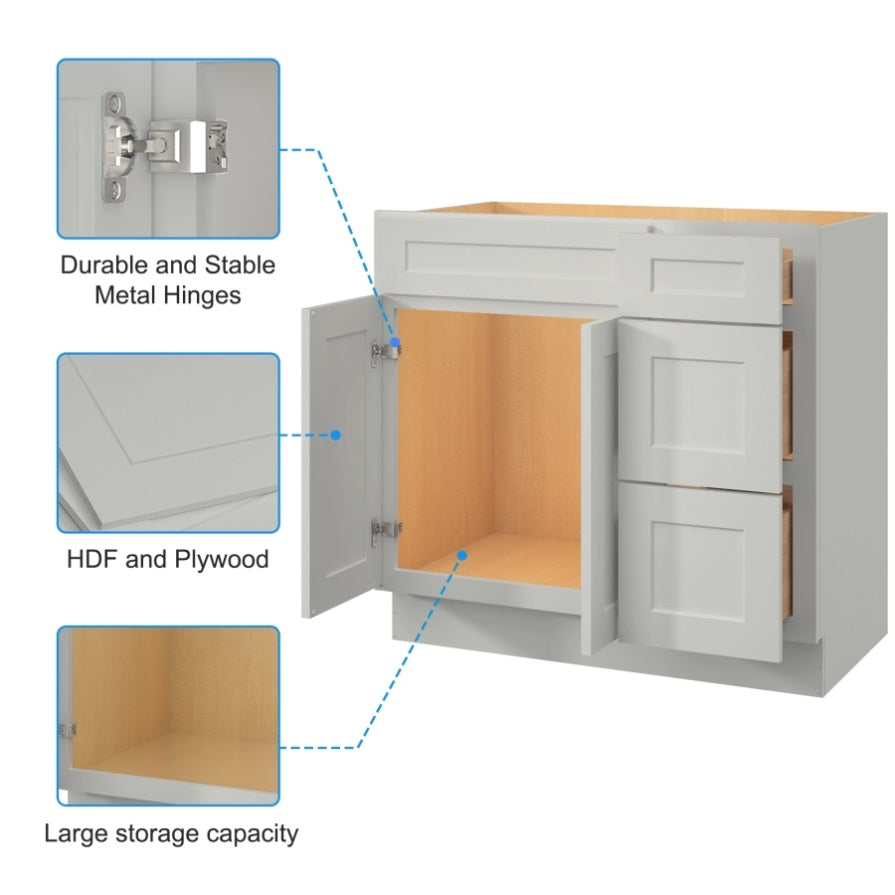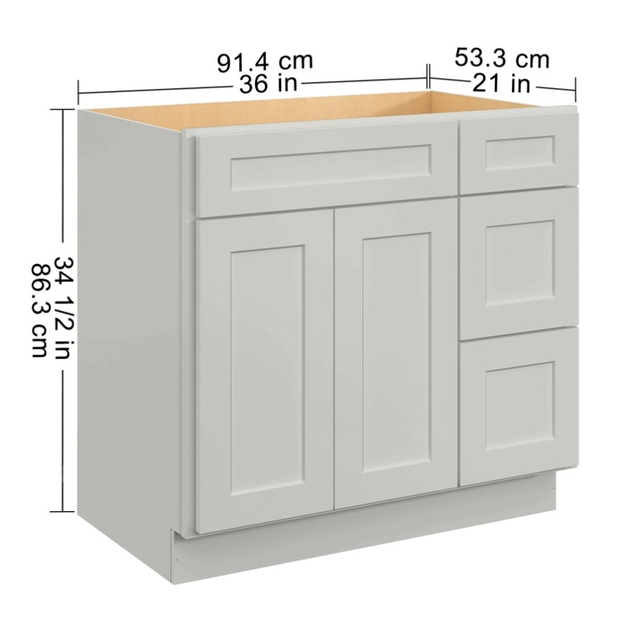 36 in. W x 21 in. D x 34.5 in. H in Shaker Dove Plywood Ready to Assemble Floor Vanity Sink Base T3210P282894