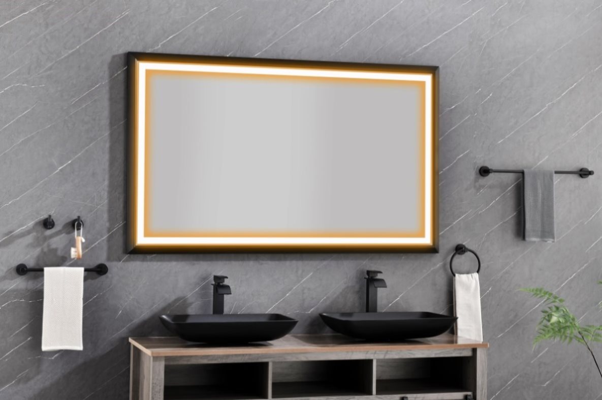 The anti-fog function of the bathroom mirror can quickly remove water vapor on the mirror surface, and no need to wipe the mirror after bathing, and can also maintain a clear view.