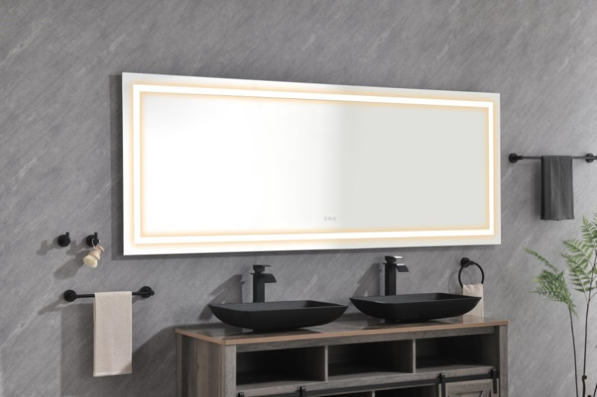The anti-fog function of the bathroom mirror can quickly remove water vapor on the mirror surface, and no need to wipe the mirror after bathing, and can also maintain a clear view.