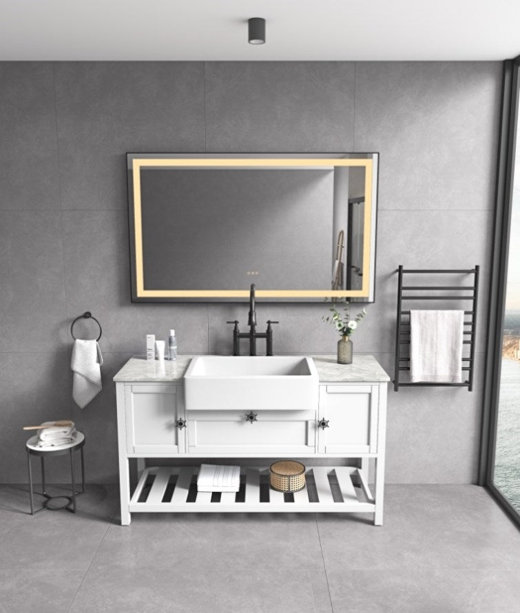 The anti-fog function of the bathroom mirror can quickly remove water vapor on the mirror surface, and no need to wipe the mirror after bathing, and can also maintain a clear view.