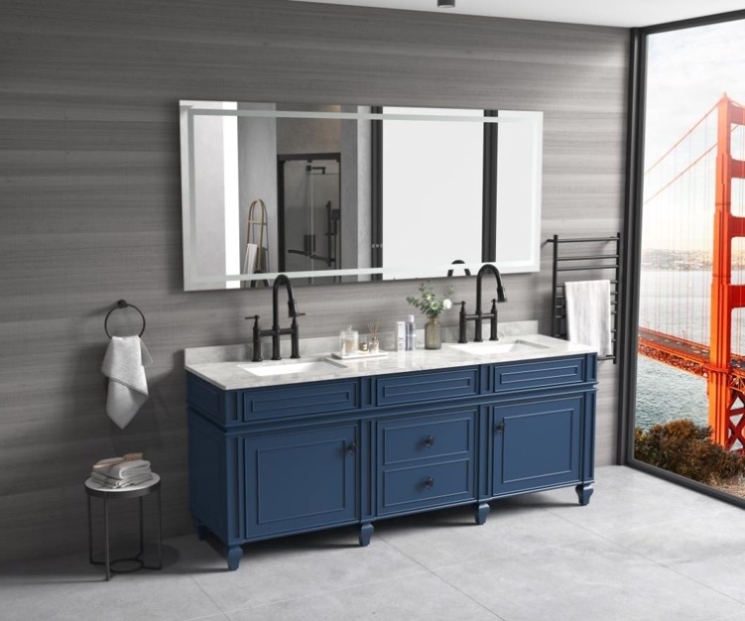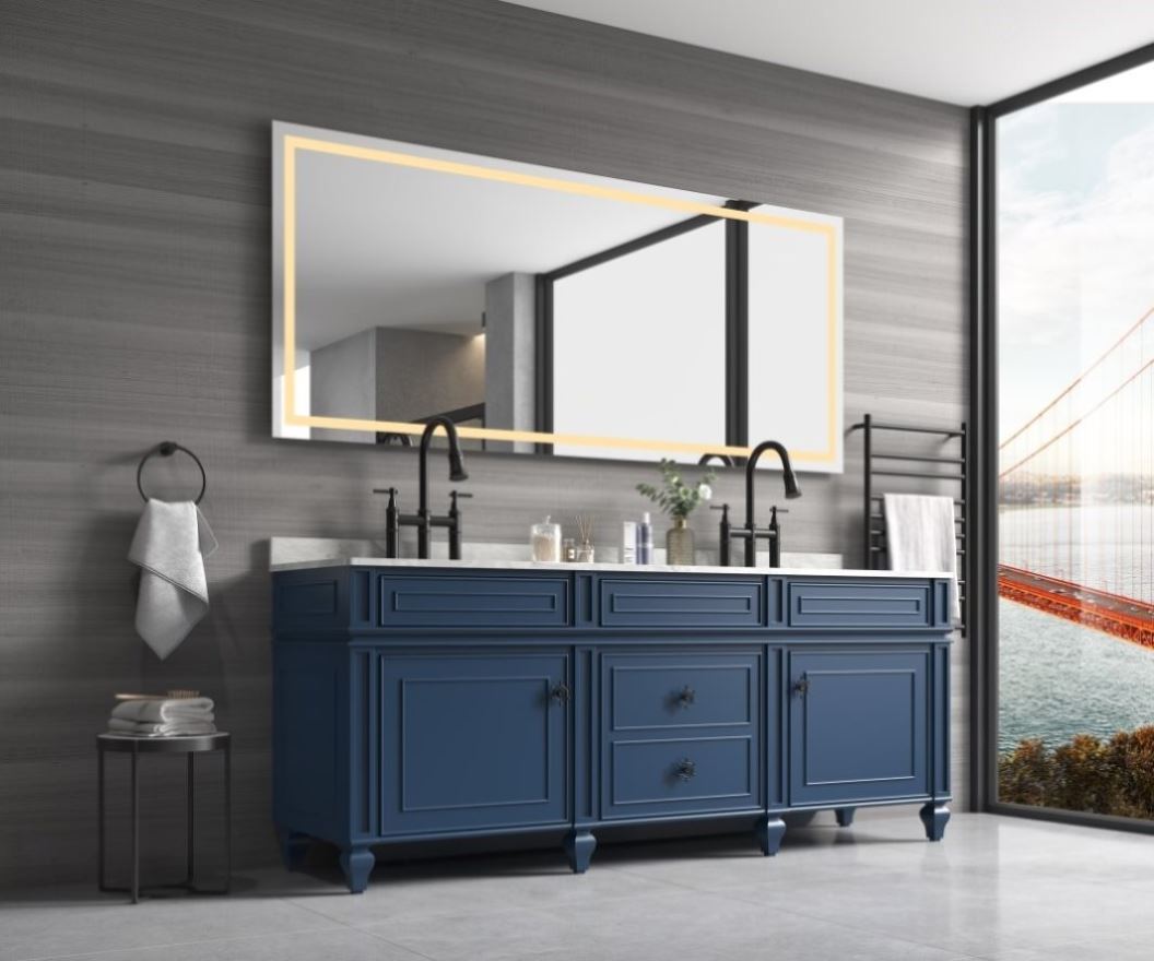 The anti-fog function of the bathroom mirror can quickly remove water vapor on the mirror surface, and no need to wipe the mirror after bathing, and can also maintain a clear view.