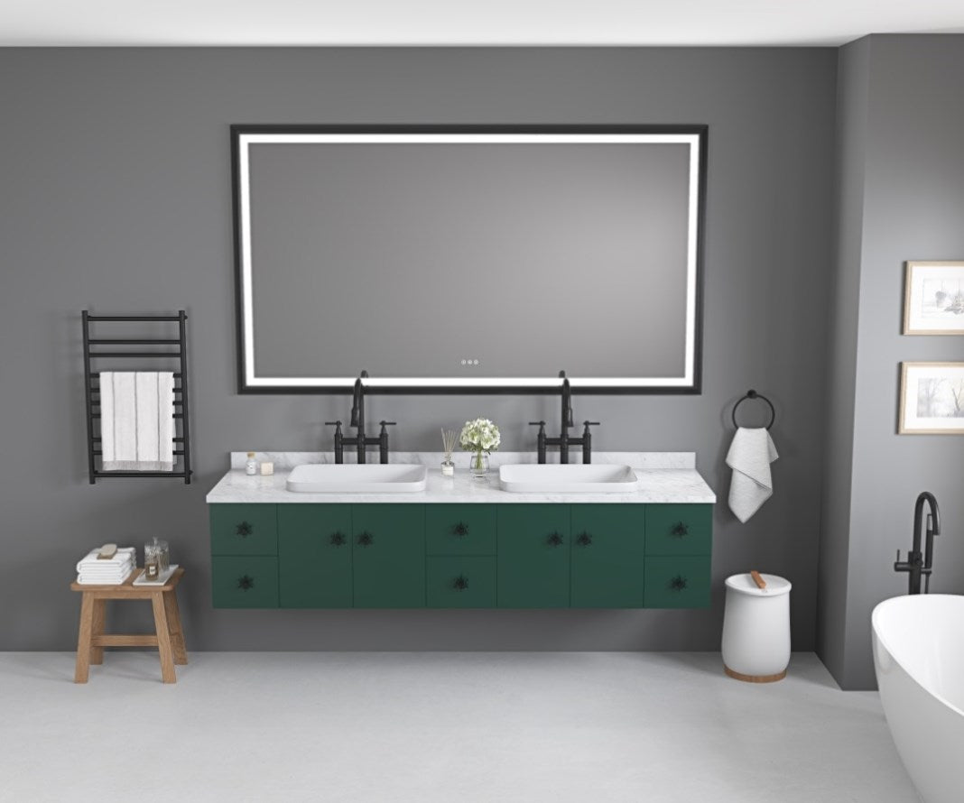 The anti-fog function of the bathroom mirror can quickly remove water vapor on the mirror surface, and no need to wipe the mirror after bathing, and can also maintain a clear view.