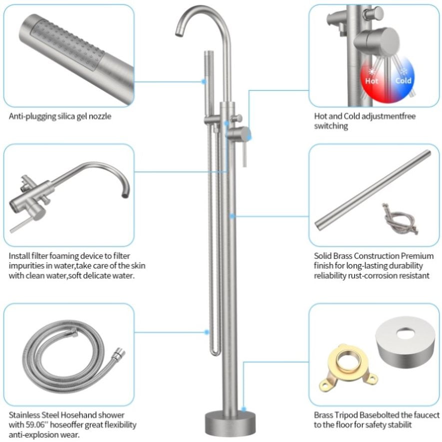 ✔ High Quality Freestanding Faucet: The main parts are made of solid brass, very durable and reliable. The surface adopts multi-layer electroplating technology, which is make the surface bright and smooth, beautiful and durable. With elegant and fashionable design, suitable for all bathrooms with bathtub✔Functions: 360 Degree Swivel Spout, Handheld...