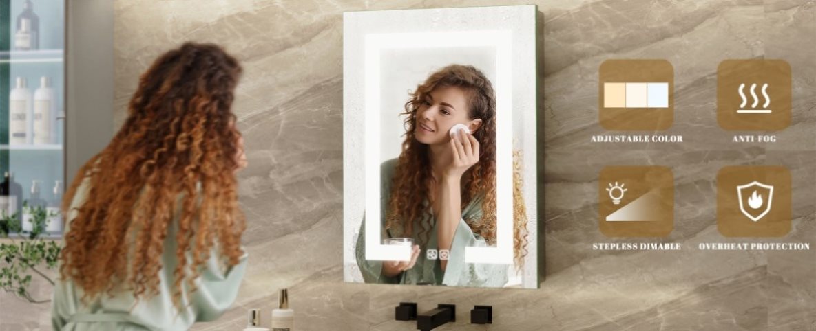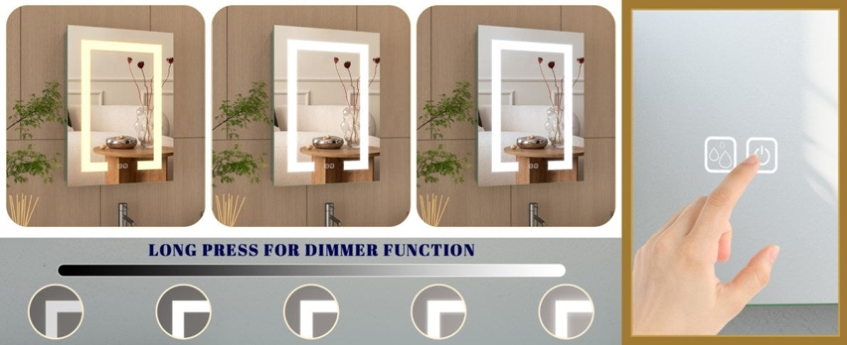 [Defog Function] The anti-fog function of the bathroom vanity cabinet mirror ensures that it reflects clearly even in humid environments. Turn on 10-15 minutes before the shower, during which you can clearly see your reflection, and it will automatically turn off after 1 hour.