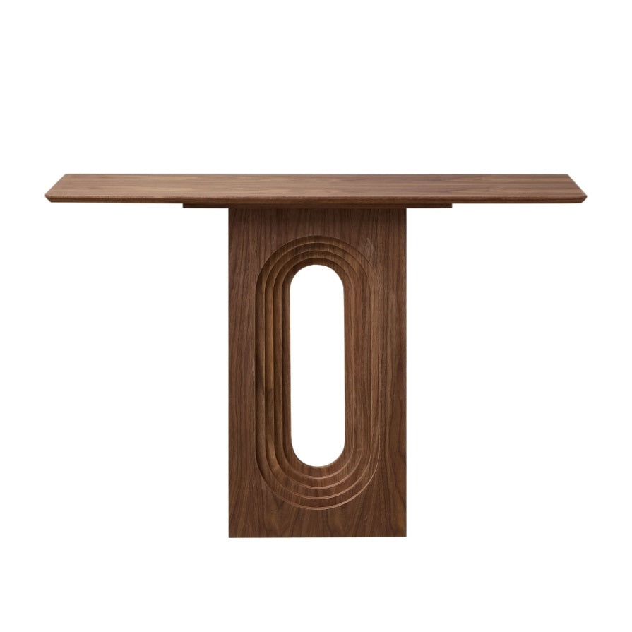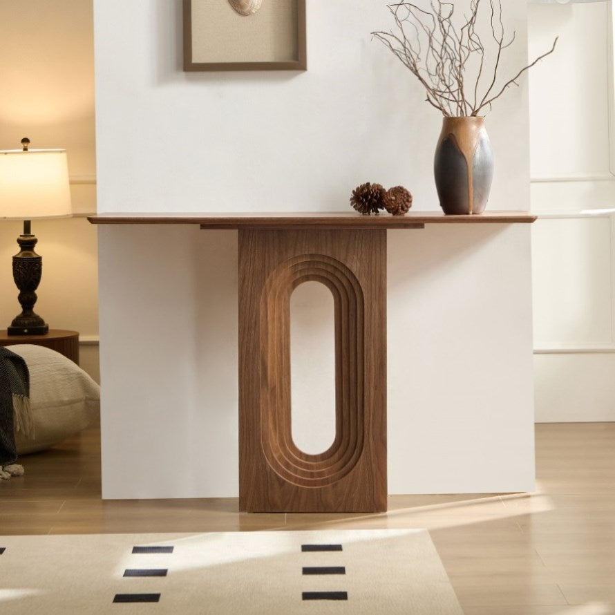 [Modern Design Console Table]The table has unique loopback design,add layers visually,also boasts a wood veneer surface that adds a touch of texture to your home decor. Modern simple design, also can suitable any style.