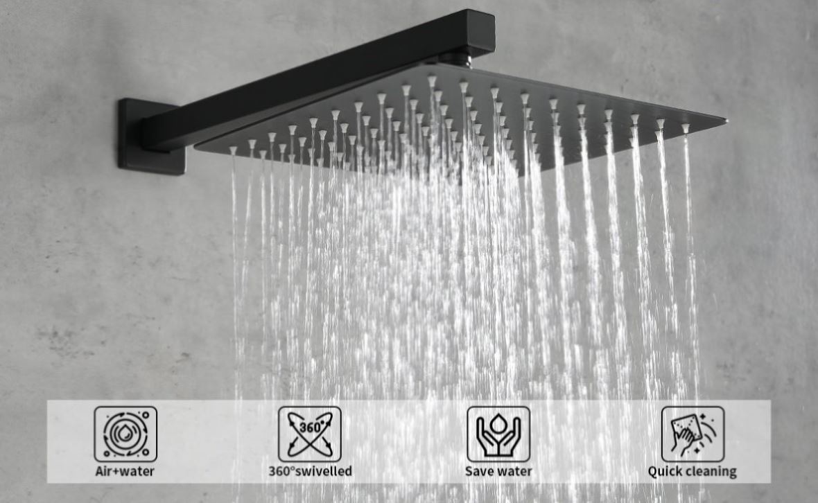 Air Inject Technology: Inject the air into rain shower head to mix with water, and boost the water pressure up to 2.5GPM instantly. Works well in both high and low water pressure area, and avoid wasting much water while providing smooth and strong water flow.