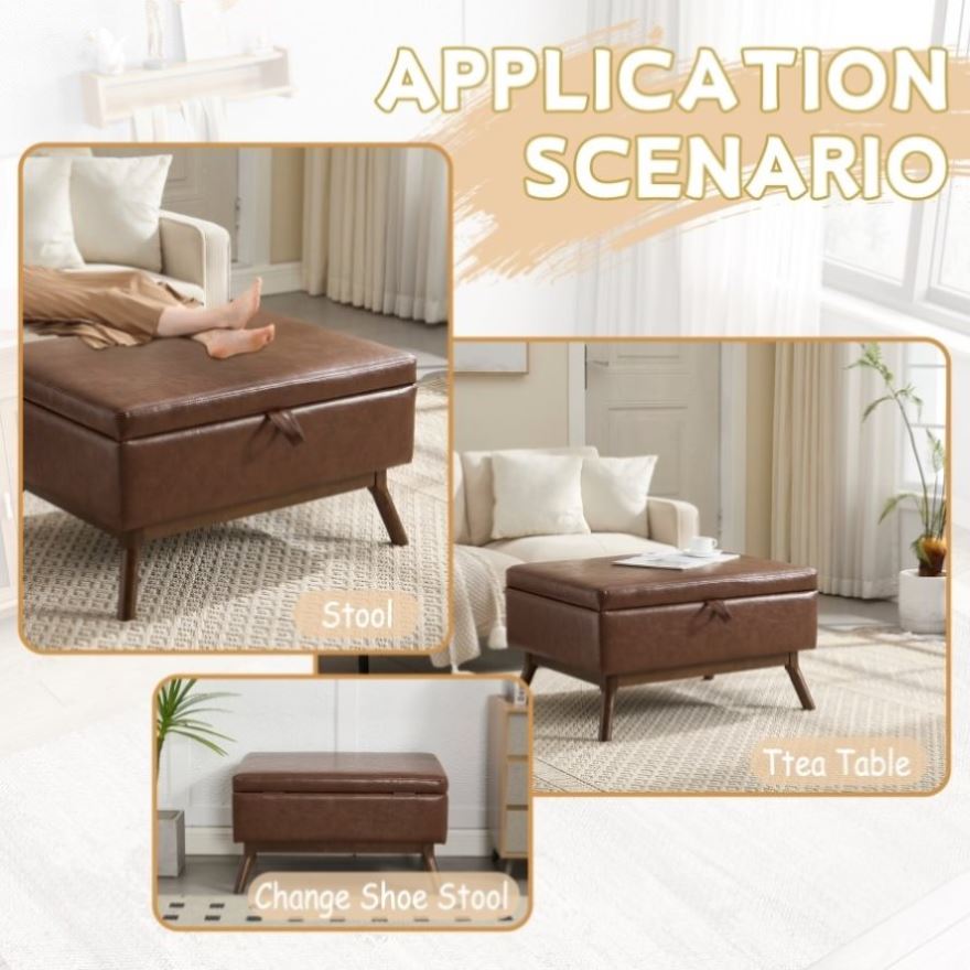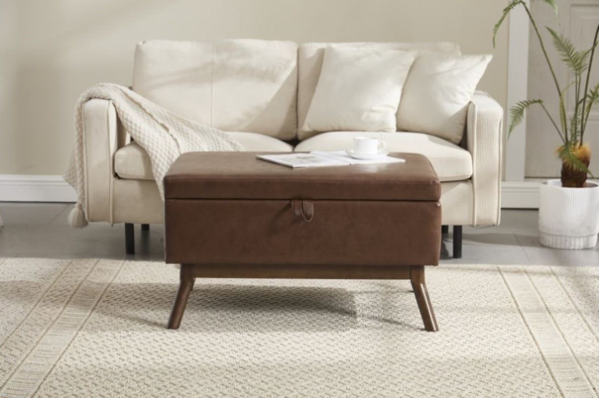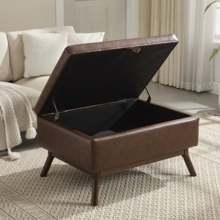 Hand constructed using solid wood, engineered woods and high density foam.Features a top that easily lifts to reveal a storage compartment and child safety hinge to prevent lid slamming.Multi-functional ottoman can be used in, living room, family room as a coffee table, foot stool, accent furniture or provide additional sitting.Mid...