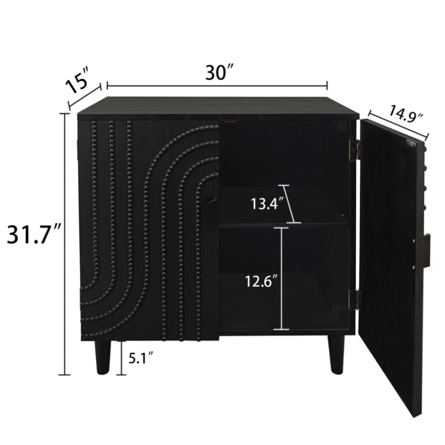 Spacious Storage - Two-tier shelving with13.4in upper shelf and 12.6in lower shelf provides ample room for organizing essentials.Compact & Stylish - Measuring 30in (W) x 15in (D) x 31.7in (H), this cabinet is perfect for small spaces while offering generous storage.Decorative Embossed Design - The round wood beads on the...