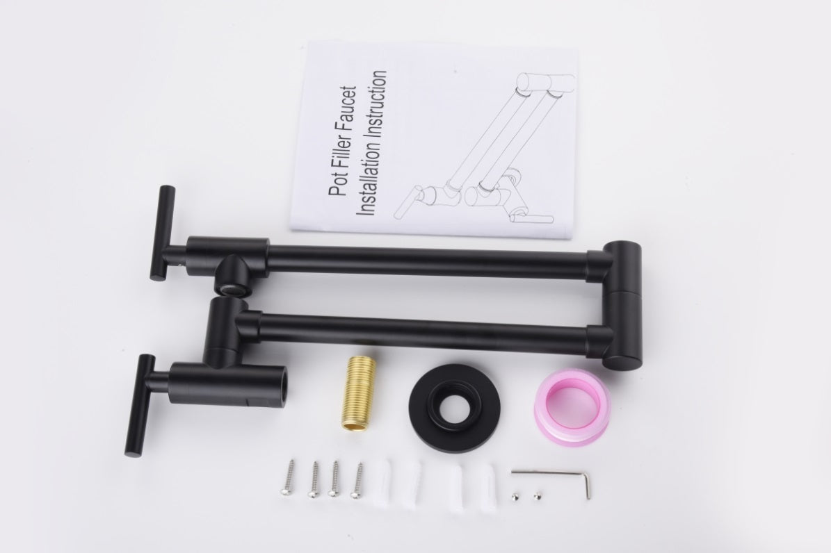 Pot filler faucet: high quality brass and metel material,matte black,ensures durability and easy cleaning.Use for only cold water or only hot water,one hole inlet wall mount.