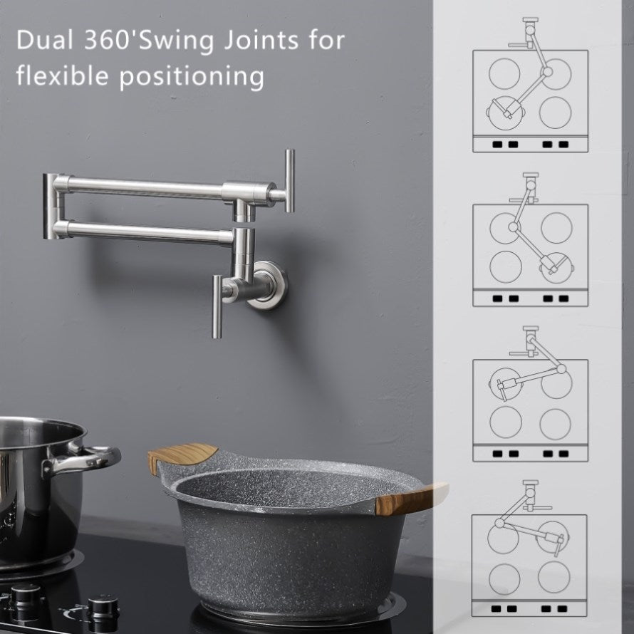 Pot Filler,Wall Mount Commercial Pot Filler Faucet,304 SS Material Kitchen Folding Faucet