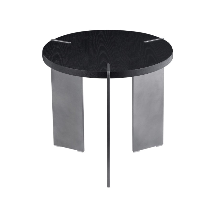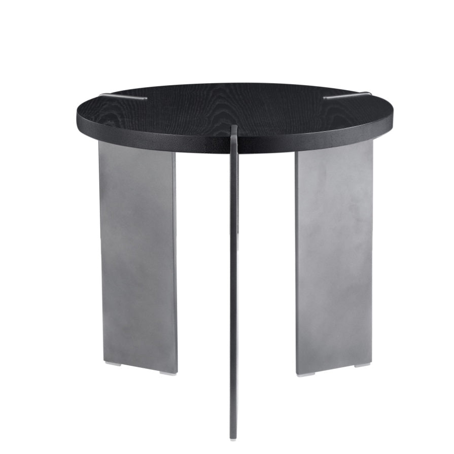 Round Coffee Table Black Oak Wood Surface and Black Metel Feet