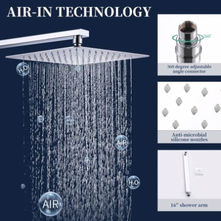 4. Air energy technology offer consistent powerful rain shower even under low water pressure.