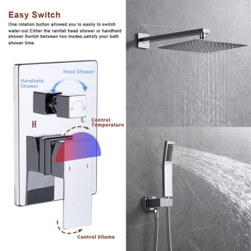 1. Includes: L Style Brass Handheld Shower Head,12 Inch304 Stainless Steel Rain Shower Head and Solid Brass Shower Mixer Valve2. 16 Inch (40cm) Metal Shower Arm and 59 Inch Shower Hose, Concealed installation Brass Shower Bracket Holder3. Nice plated finish offers a sleek look, ensuring corrosion resistance and durable4. Air...