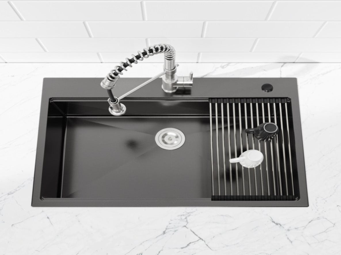 Sustainable Brushed Steel: This scratch-resistant and easy-to-clean finish ensures your sink remains pristine and durable well into the future.