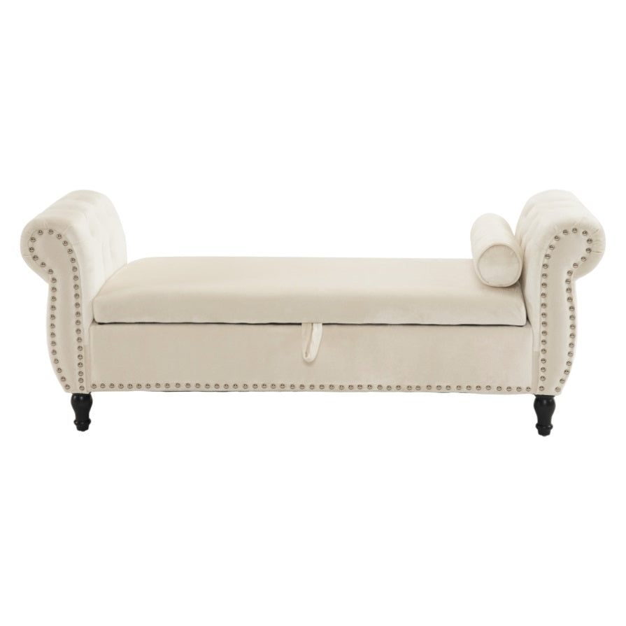 Velvet Multifunctional Storage Rectangular ottoman bench with 1 Pillow, Beige N769P186110B