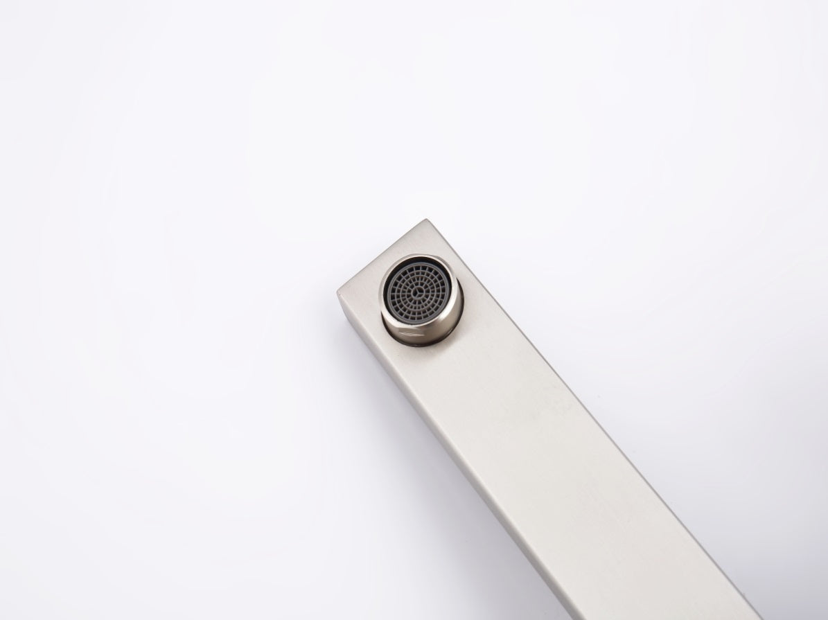 Bubble Aerator Spout The Bathroom Faucet‘s bubble aerator on the spout makes water flows out with a lot of air, steady and no water spatter, making your room drier and neater and 1.8 (GPM) flow rate also helping to save water. Fully applicable to bathtub and Wash basin.