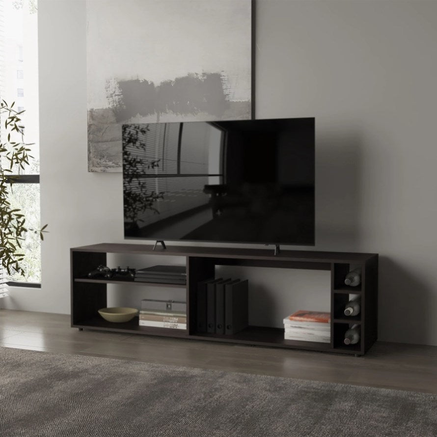 Showcasing a rich Wenge finish, this piece exudes elegance with its deep, sophisticated wood tone, while offering four spacious shelves to maximize storage and organization. Designed to accommodate up to a 70-inch screen, it serves as the perfect centerpiece for your entertainment setup, with open storage for easy access and a clutter-free display of your essentials.