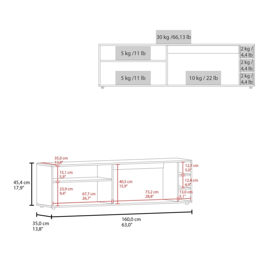 | Dimensions | 17.9 inches high x 63 inches wide x 13.8 inches deep |
