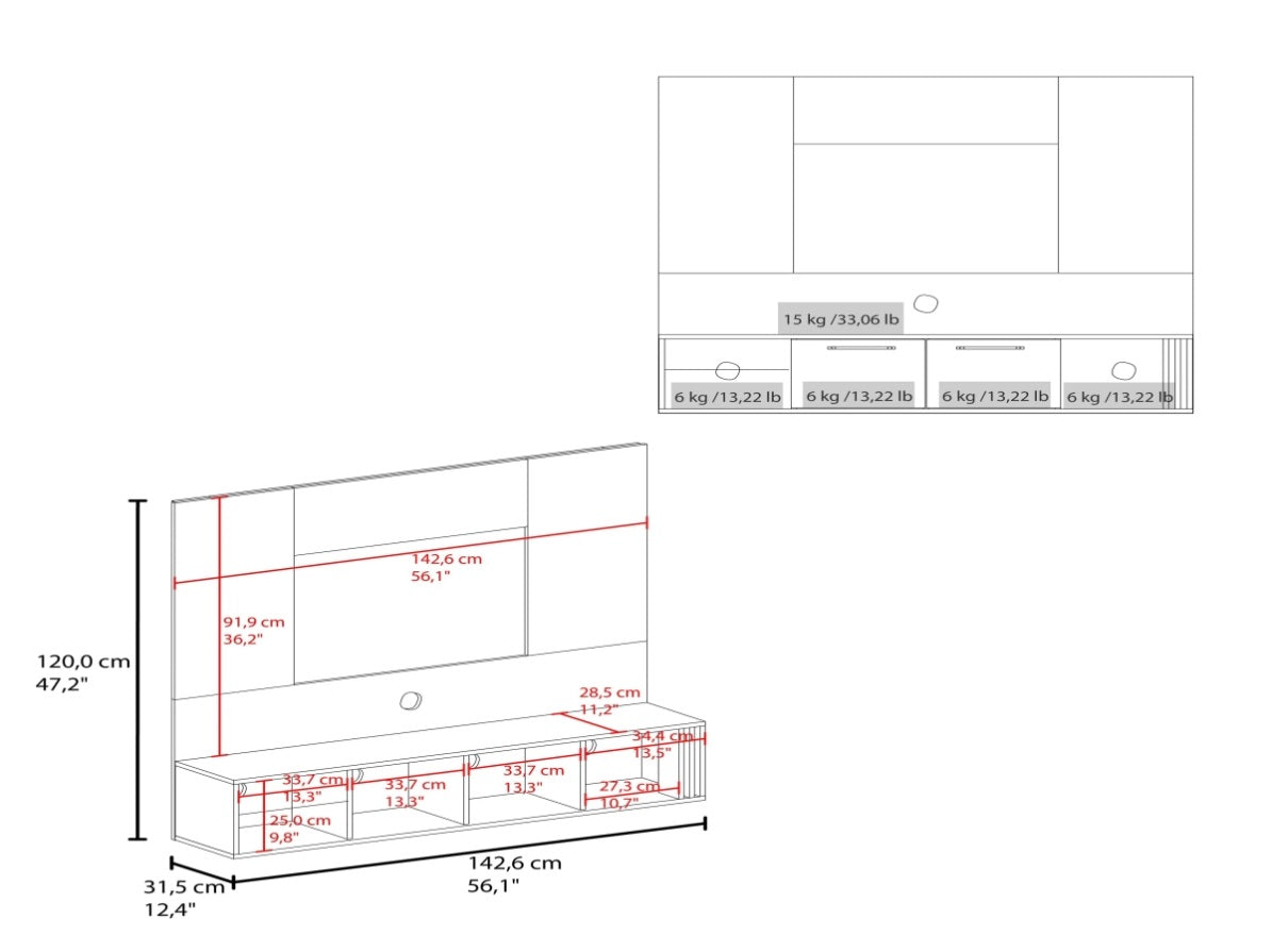 Dimensions 47.2 inches high x 56.1 inches wide x 12.4 inches deep
