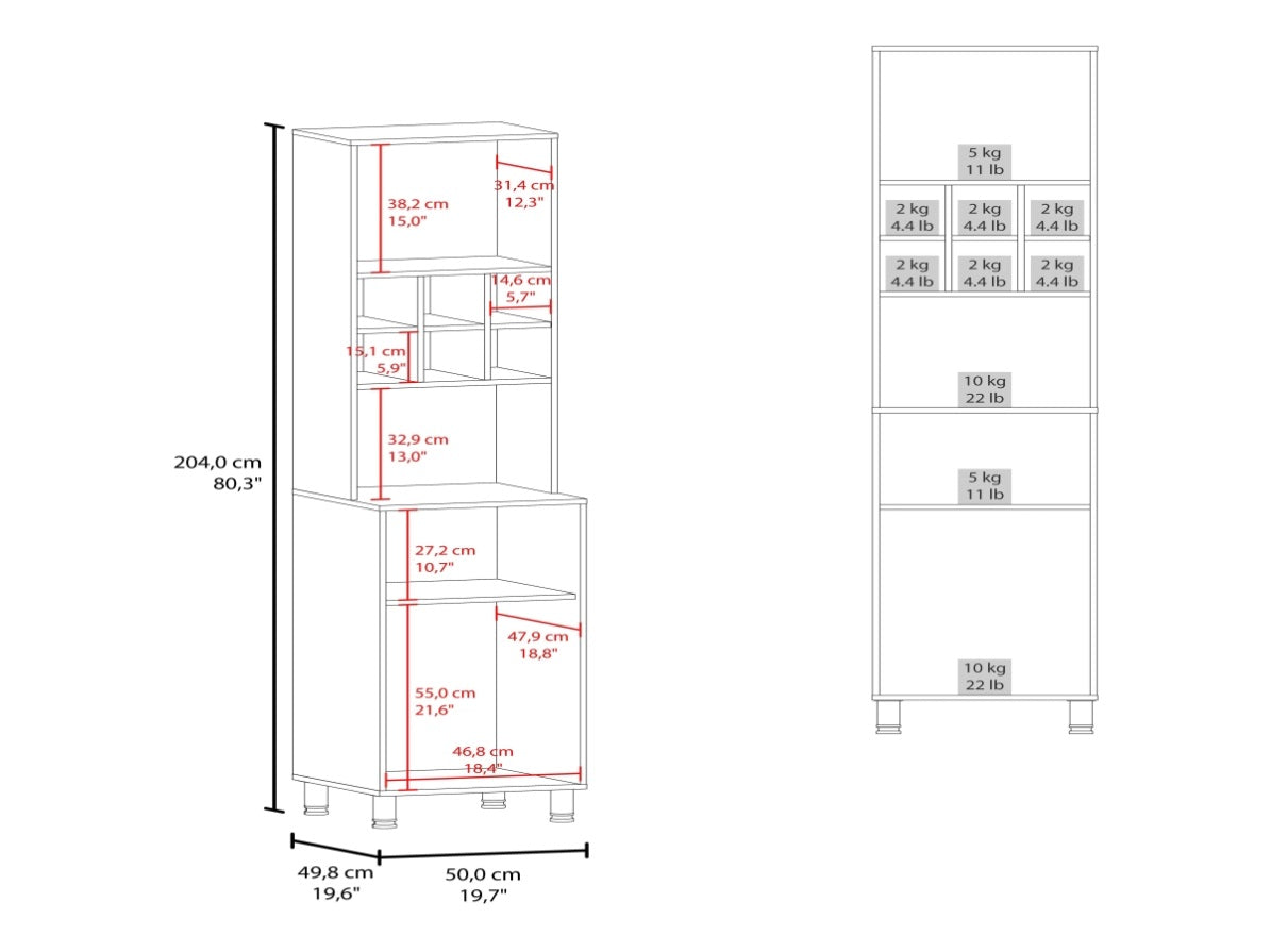 | Dimensions | 80.3 inches high x 19.6 inches wide x 19.7 inches deep |