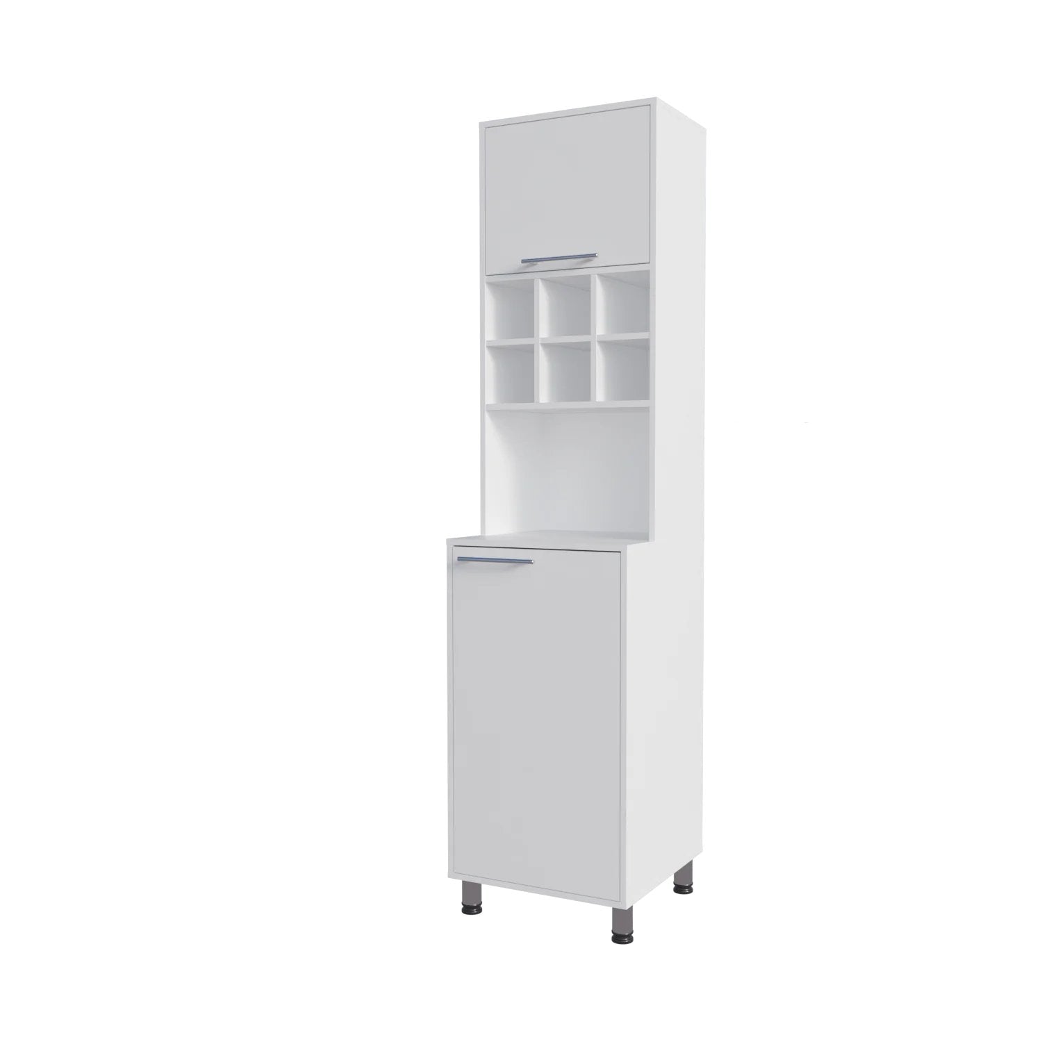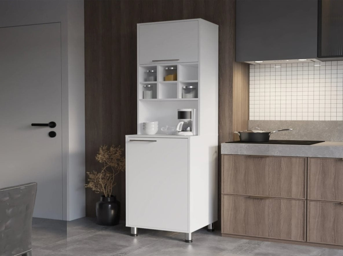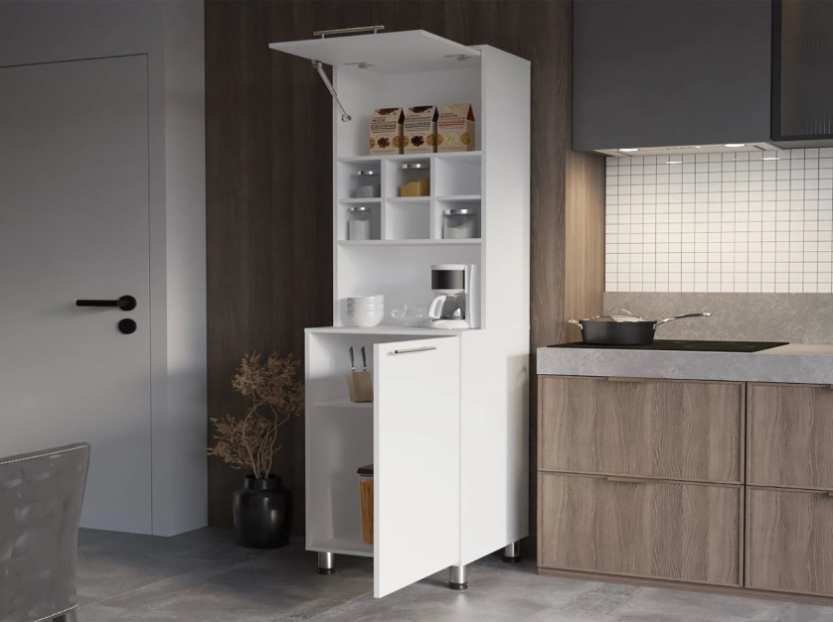 White Kitchen Pantry with Pneumatic Door and Open Storage B062P290239