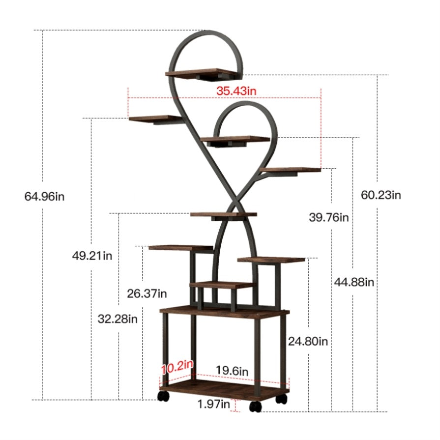 (Heart Shape) Plant Stand Indoor with Grow Lights, Tiered Indoor Plant Shelf, Metal Plant Flower W2641P323276