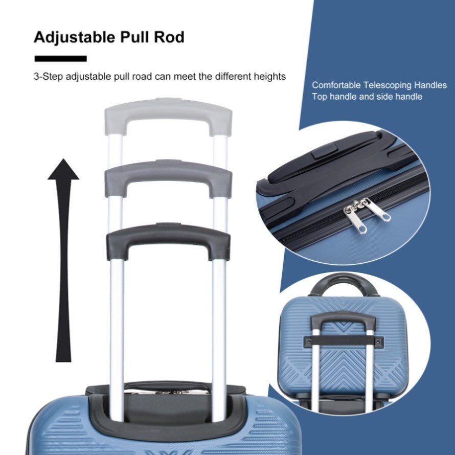 4-piece ABS lightweight suitcase, 14 inch makeup box, aircraft wheels BLUE W284P149260