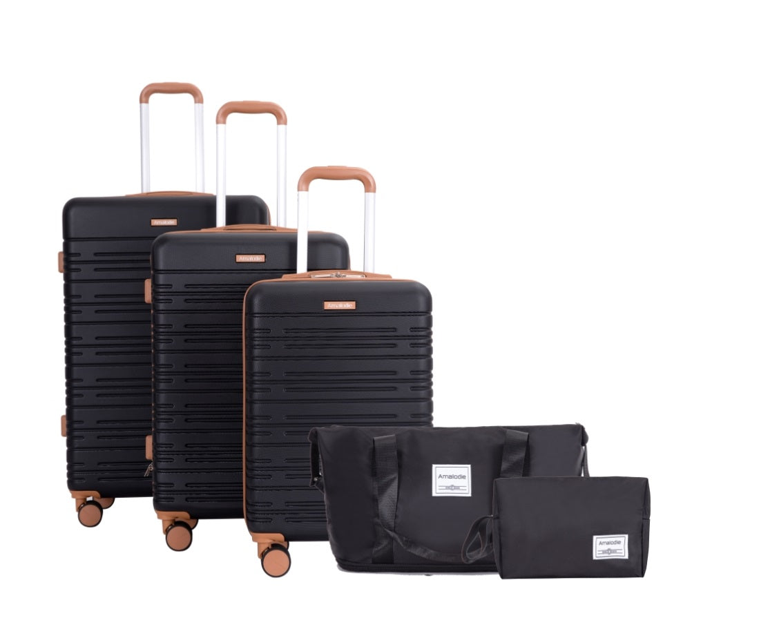 Premium Luggage Sets: Made from brand new, extra-thick ABS material, our luggage sets are lighter and lasting-longer. Featuring a textured finish for scratch resistance, they retain their beauty throughout your travels. This 5-piece luggage set includes a 20 inch carry on luggage, a 24 inch expandable check-in suitcase, a 28-inch expandable large luggage, a travel bag and a toiletry bag