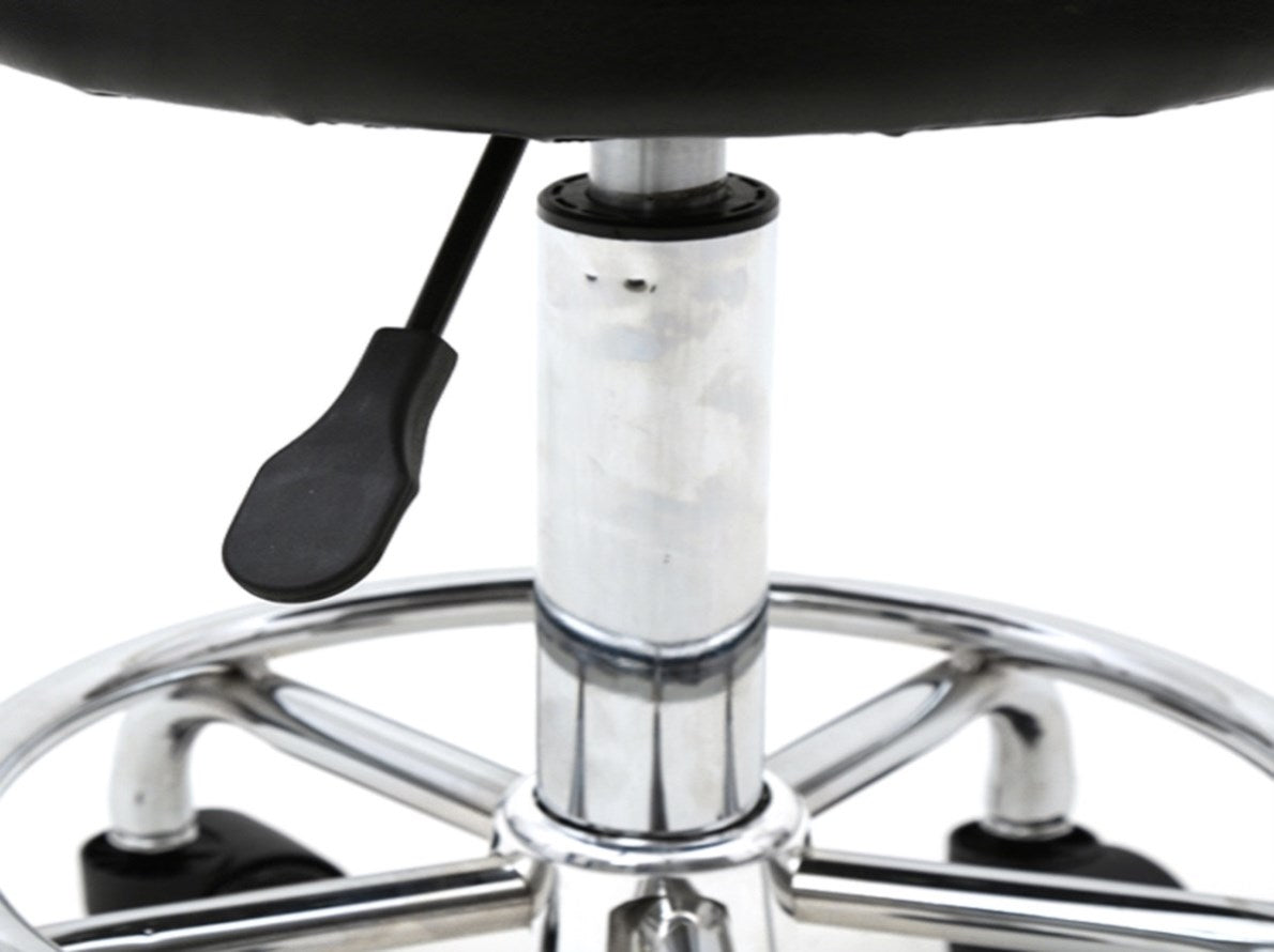 Are you looking for a high quality adjustable salon stool? Then this Round Shape Adjustable Salon Stool with Back and Line is an excellent choice for you! It is made of high quality PU leather & sponge & iron plating chrome material, durable and safe for your or your family use a long time. With a light weight and practical design, it is easy for you to move it. It also features anti-skidding and anti-rust design, so you can rest assured to buy it! You will feel satisfied!